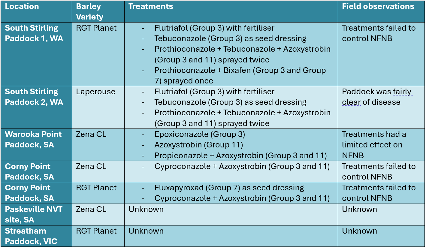Fungicide resistance or reduced sensitivity to Group 3, Group 7 and Group 11 fungicides has been around for some time now. But the main distinguishing factor in the latest samples is that mutations associated with fungicide resistance and reduced sensitivity to all three groups have been detected together, in individual NFNB isolates – hence the triple threat, now known as the ‘triple mutant’.